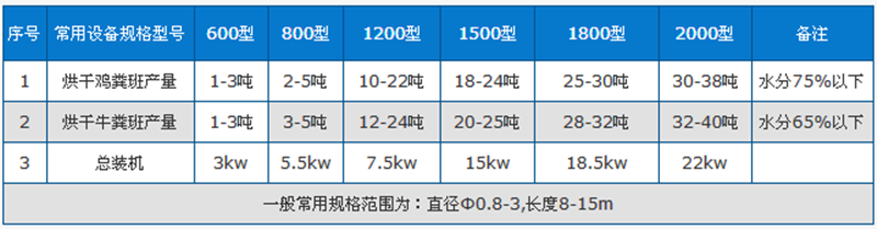雞糞烘干機技術參數